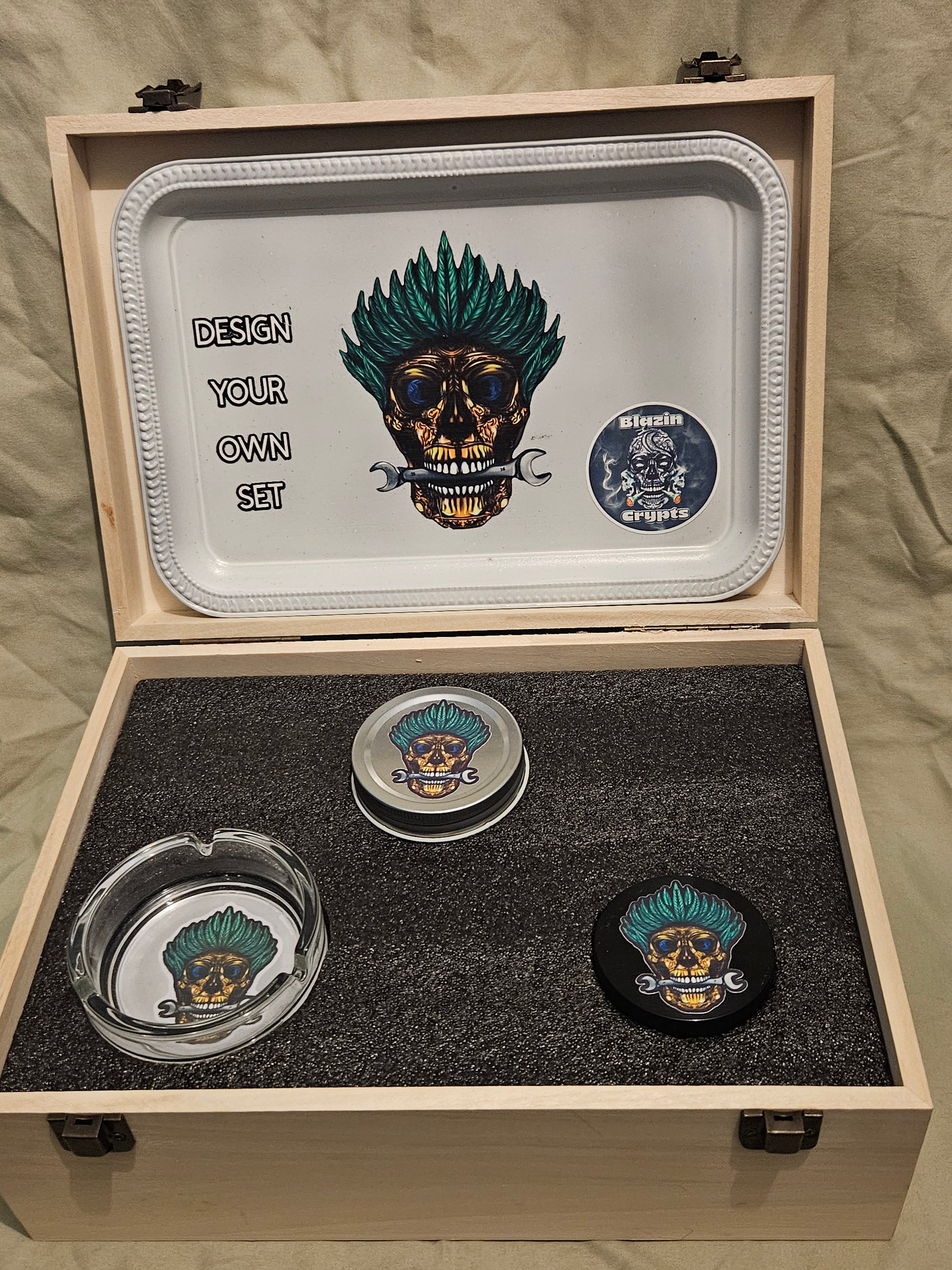 A custom 1 of 1 Rolling tray set with your choice of image.